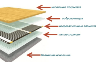 L'un des moyens de compenser les pertes de chaleur dans une loggia est d'installer un système de "plancher chaud". Le chauffage de l'eau ne peut pas être utilisé, de plus, il n'est pas conseillé dans une si petite zone. Le revêtement de sol électronique ou infrarouge par câble est très bien.