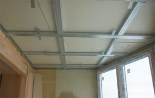 Le plafond doit également être isolé, surtout s'il y a un balcon ou une rue non vitré au-dessus. Une caisse en bois ou en métal est également montée au plafond, le long de laquelle l'isolation est posée. Ensuite, le plafond est ourlé avec un matériau de finition à lattes - bois ou métal, cousu avec des plaques de plâtre ou une toile PVC extensible. Si le balcon est chaud, le film PVC peut être tiré hardiment.