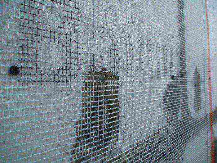 - Fixation du treillis. La meilleure option est un maillage en plastique à maillons de chaîne. Il est fixé ponctuellement avec des clips en silicone ou en plastique chaud. Sur un tel cadre, le mastic tiendra bien.