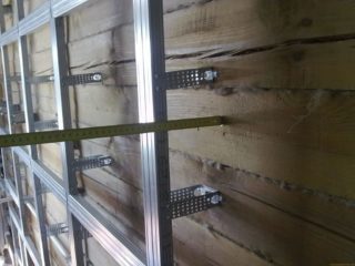 - Après avoir effectué les mesures et les calculs, la plaque de départ et les supports pour profilés verticaux et horizontaux sont vissés aux murs.