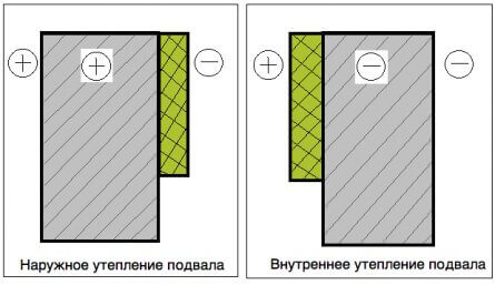 La base du bâtiment peut être isolée de l'intérieur et de l'extérieur. Chaque technologie a ses propres caractéristiques, avantages et inconvénients.