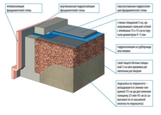 Cette méthode d'isolation a une bonne efficacité et fiabilité. Une structure multicouche sera envisagée, qui pourra être modifiée en fonction des conditions climatiques de résidence. Une couche de béton sec (environ 5 cm), de béton mousse (10 cm), d'argile expansée (15 cm), de coussin de sable (15 cm) est posée. L'épaisseur peut également être modifiée.