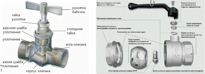 Ils sont divisés en 2 types - boule et aiguille. Les premiers sont utilisés pour la coupure opérationnelle de l'eau. La bille installée dans la vanne a un trou traversant. Lorsque son axe coïncide avec la direction de mouvement du liquide de refroidissement, l'eau s'écoule sans entrave le long de la ligne. Lors du changement de vitesse, le débit réel du système diminue.Le principal avantage de ces composants pour les systèmes de chauffage est la capacité de couper rapidement l'eau. Pour ce faire, il suffit de tourner le levier de 90°. Si vous avez besoin d'un réglage en douceur, vous devez installer des robinets à pointeau et des vannes à vanne.