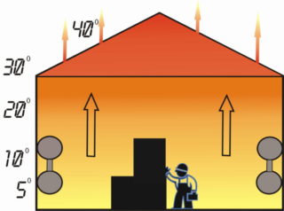 La lampe diffuse des rayons infrarouges autour d'elle, au contact d'objets quelconques, ils les chauffent. Toute la zone de la pièce est réchauffée uniformément, et non l'air dans sa partie supérieure. Il suffit d'allumer une lampe puissante pour réchauffer sensiblement la pièce en quelques minutes.