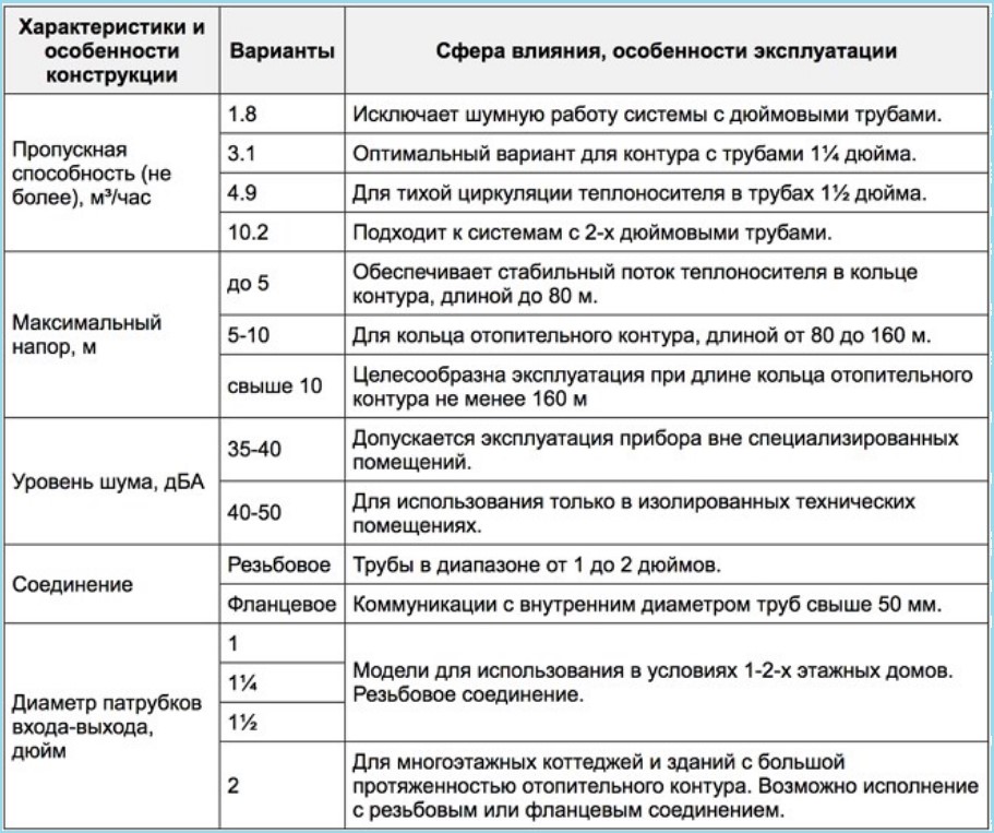 Il n'est possible de choisir la bonne pompe pour les systèmes de chauffage qu'après une étude minutieuse de ses caractéristiques techniques :