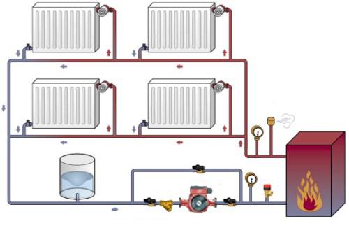 La base de tout système de chauffage est la chaudière. Il chauffe le liquide de refroidissement, qui se déplace à travers les tuyaux et dégage de la chaleur vers les radiateurs. Pour le mouvement forcé du liquide dans le système, une pompe de circulation est activée. En plus de ces composants, la structure comprend des tuyaux, des batteries, un vase d'expansion, des raccords et des soupapes de sécurité.