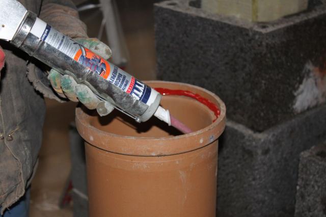 En utilisant la pâte, vous pouvez traiter une cheminée en brique du côté de la rue, sceller les joints du toit avec une hotte d'évacuation, une cheminée en brique, en métal s'il existe une chaudière avec un rendement de 90%. Le produit est également utilisé pour colmater les fissures externes dans la maçonnerie des cheminées, les filetages des circuits de chauffage.