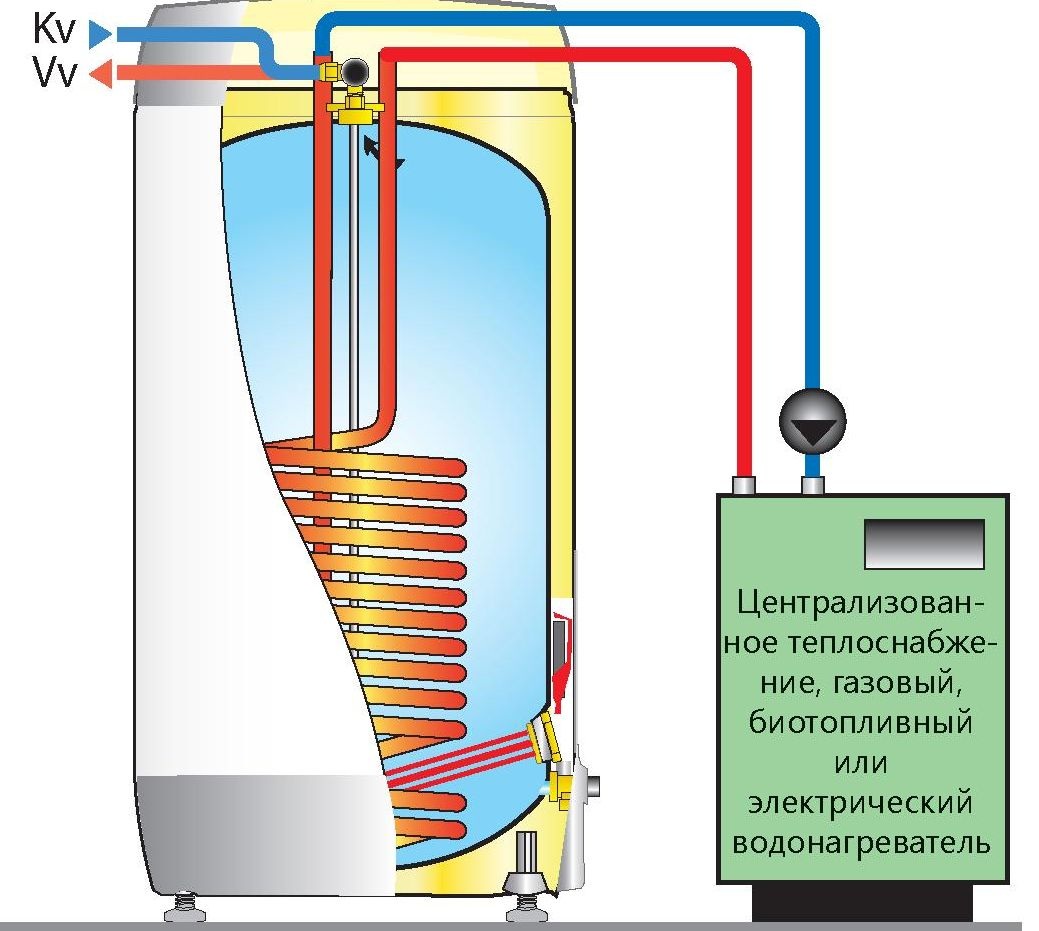 De tels dispositifs de chauffage ne sont pratiquement pas utilisés. Ils combinent un stockage et une chaudière instantanée. Ils peuvent fonctionner selon deux modes. Le poids maximum de l'appareil est de 6 kg, le volume du réservoir est de 10-30 litres.