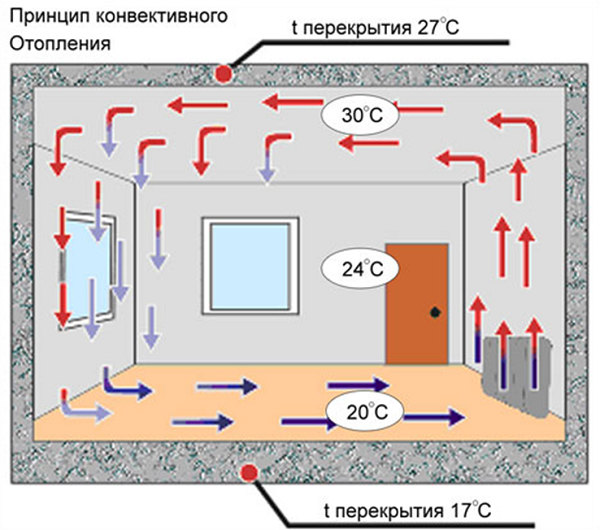 Dans un convecteur, l'élément chauffant commence immédiatement à chauffer le corps de l'appareil, son efficacité est de 95%. Mais la vitesse de chauffage est faible, voire inférieure à celle du mazout, de sorte que l'air se réchauffe uniformément, mais lentement.