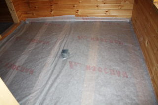 - En tant que pare-vapeur, une feuille est placée sur le dessus avec collage des coutures avec du ruban pare-vapeur.