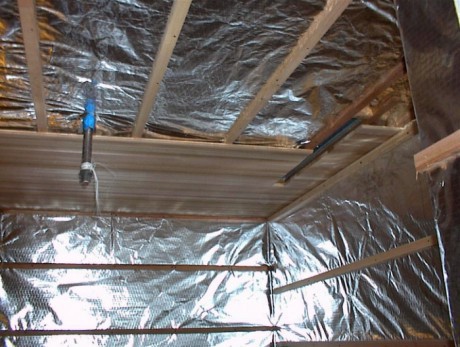 Le papier aluminium est idéal. Ce matériau n'absorbe pas l'humidité, est ignifuge, durable. La feuille réfléchit les ondes infrarouges, ce qui accélère le chauffage de la pièce.