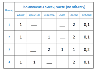 - il est préférable d'utiliser de la chaux ou de l'argile dans la composition, mais il est impératif d'ajouter de l'amiante ;