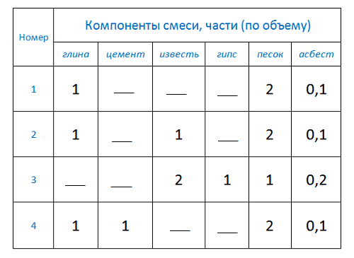 La composition est préparée indépendamment afin de recouvrir les petits foyers; pour les grands fours, il est préférable d'acheter des mélanges à haute température préparés en usine.