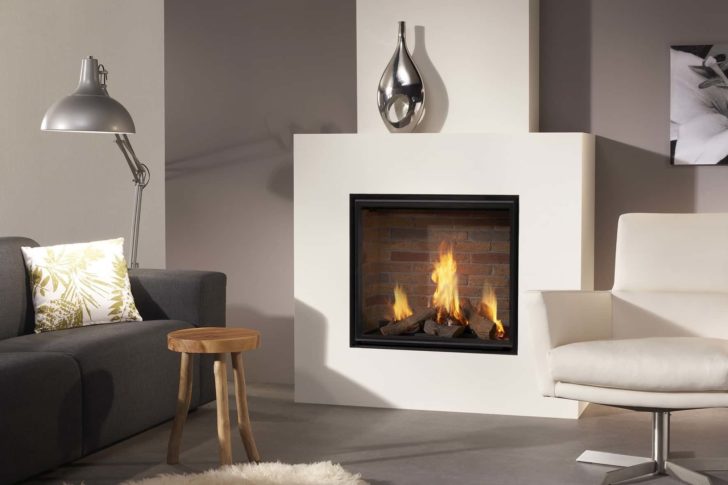 - Foyer au gaz. Équipé d'une chambre de combustion ouverte ou fermée et d'une hotte d'extraction efficace. Les produits fonctionnent à partir de cylindres ou d'une ligne domestique. Pour pouvoir déplacer des appareils dans l'appartement, le gazoduc est posé à l'intérieur du boîtier.