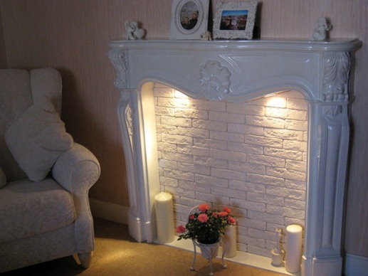 - Fausse cheminée. Ce sont des objets purement décoratifs qui n'ont pas de fonction chauffante.À l'intérieur du portail, il y a du faux bois de chauffage avec de la vapeur, de la lumière ou un éclairage électronique.