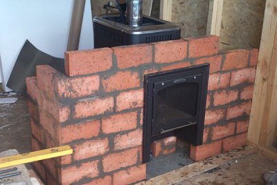 Le poêle et le portail pèsent lourd, une base solide est donc posée sous la base. En cas de soulèvement, il ne doit pas être associé à la base de la maison.