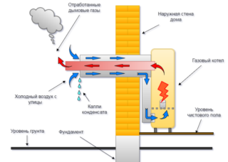 Le tube intérieur mince a pour fonction d'évacuer les produits de combustion. Le matériau pour sa fabrication est l'acier inoxydable de haute qualité. Le rôle du tube extérieur est d'alimenter la chambre de combustion en air de rue. Du côté de la pièce, les tuyaux sont connectés à la chaudière et leurs extrémités opposées s'étendent à l'extérieur de la pièce. Étant donné que le tuyau extérieur n'est pas en contact direct avec les gaz chauds et les produits chimiques agressifs, un matériau bon marché peut être utilisé pour sa fabrication.