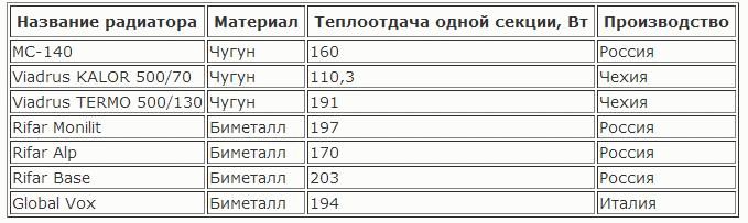 En termes de caractéristiques thermiques, les échantillons modernes de produits à base de fonte sont très divers. Les modèles correspondants de la République tchèque ont des performances élevées en termes d'efficacité de chauffage des espaces de vie. Les échantillons sous le nom de Viadrus STYL 500 sont constitués de tranches dont chacune permet de développer une puissance thermique d'environ 0,14 kW. De plus, ses segments sont presque deux fois plus légers et plus petits que la plupart des modèles domestiques bien connus.