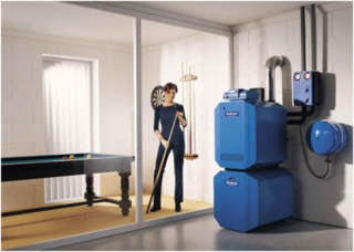 L'équipement mural est une mini-chaufferie commandée par une télécommande. Les chaudières ont un échangeur de chaleur en cuivre ou en acier dans lequel est monté un brûleur tubulaire.