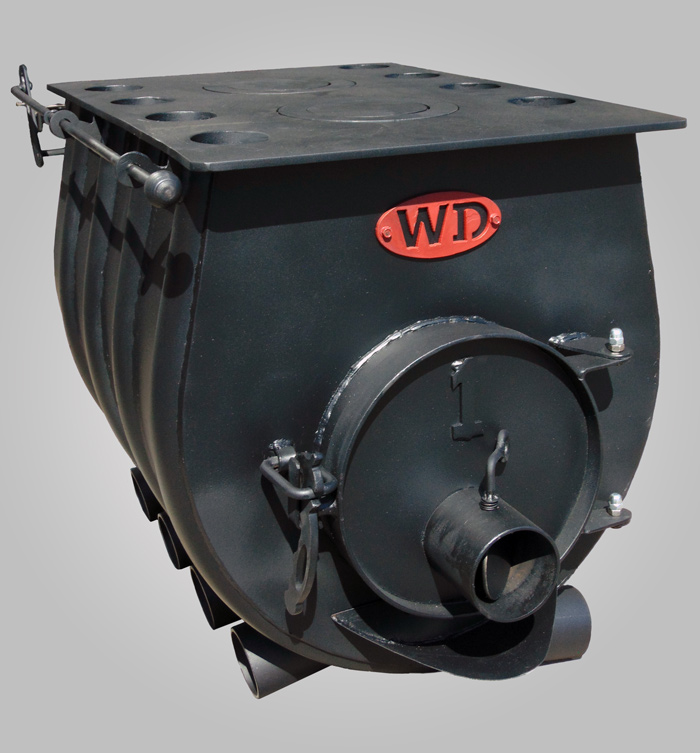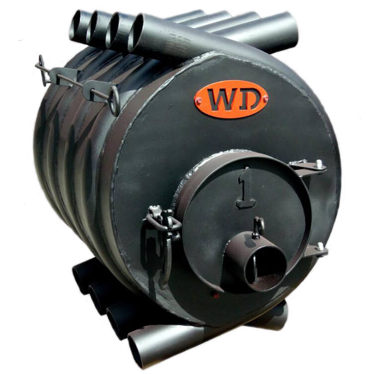 Le foyer est un cylindre métallique avec des échangeurs de chaleur tubulaires des deux côtés. Ils sont courbés en forme de genoux. En raison de la présence de la plupart des tuyaux dans le corps du poêle, l'air reçoit jusqu'à 70 % de la chaleur du bois. Cela permet de chauffer l'air jusqu'à 100°C à une température du four de 60°C.