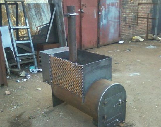 Toutes les pièces doivent être soudées ensemble. Ensuite, un bouclier thermique en brique est fabriqué. Pour ce faire, la chaudière peut être entièrement recouverte de briques ou un petit mur peut être réalisé. Des trous doivent être faits dans la partie inférieure pour la circulation de l'air.