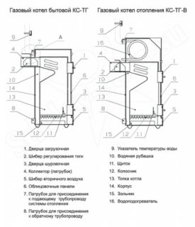 L'unité fonctionne efficacement si le gaz principal est fourni à la maison, le raccordement des bouteilles n'est pas recommandé s'il n'y a pas de gazomètre. Le gaz ne dégage pas de suie lors de la combustion et n'obstrue pas la cheminée et l'échangeur de chaleur. Les produits déchargés ont une température inférieure à la décharge des combustibles solides, par conséquent, la condensation ne se forme pas sur les parois des éléments structurels.