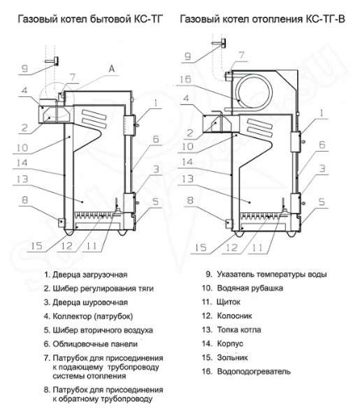 Les modèles de chaudière sont équipés d'un brûleur à gaz. L'unité est utilisée dans des systèmes de chauffage fermés et ouverts. La chaudière à gaz Don 16 ne nécessite pas de lancer régulier de bois ou de granulés. Il n'y a aucun problème de stockage des réserves de combustible et de nettoyage des déchets de combustion.