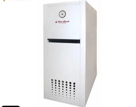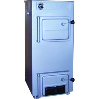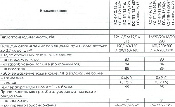 Sur le bois, il affiche un rendement de 75 %, le gaz donne un indicateur de 85 %. La pression la plus élevée dans le système est de 1,2 atm., Le diamètre du conduit d'évacuation des fumées est de 140 mm.Chaudière au sol avec chambre de combustion ouverte.