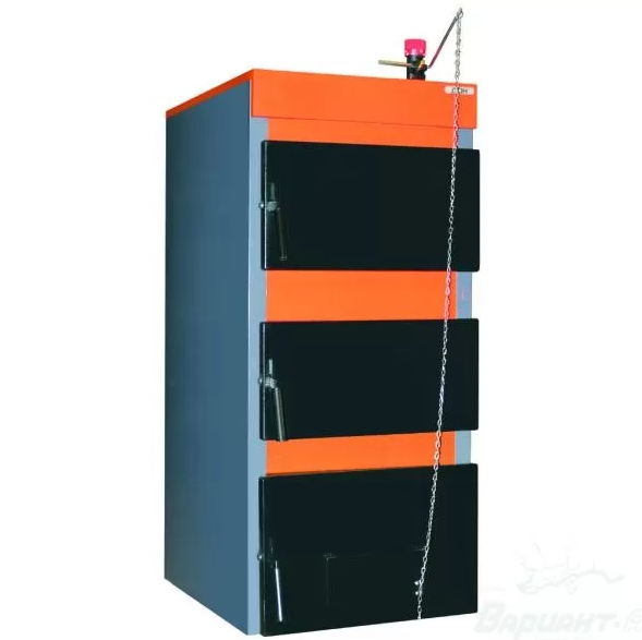 L'unité de chauffage est en acier, en fonte et l'élément chauffant est en cuivre. Assure l'alimentation manuelle ou automatique du combustible, ainsi que l'extraction des produits de combustion (cendres). Charbon, tourbe, bois de chauffage, coke ou particules de combustible - des granulés sont utilisés. Les systèmes de coordination électroniques rendent l'équipement fiable et volatile, l'appareil peut fonctionner dans un système de chauffage à circuit unique et à double circuit.