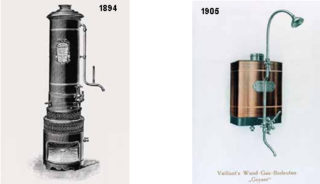 Le premier chauffe-eau à gaz au sol au monde Gas-Badeofen, qui a ensuite servi de prototype pour les chaudières à gaz modernes à circuit fermé, a été fabriqué en 1894. Il a été suivi par :