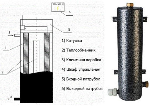 Les appareils à induction fonctionnent à l'aide de champs électromagnétiques alternatifs, après avoir été connectés au réseau, leur effet s'exerce sur la bobine. Un noyau se trouve à l'intérieur d'eux, lorsque des champs électromagnétiques apparaissent dans l'appareil, un courant de Foucault se forme, le métal commence à se réchauffer progressivement. Le caloporteur le refroidit, puis se réchauffe, ainsi le processus de chauffage est effectué.