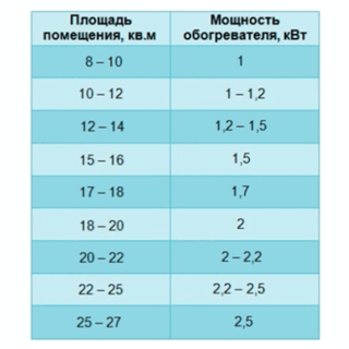 Pour choisir le bon appareil électrique, vous devez calculer la puissance nécessaire pour chauffer une pièce particulière. Pour cela, une formule spéciale est appliquée 1 kW = 10 m². Si la pièce a une superficie de 30 mètres carrés, vous devez acheter une unité de 3 kW. Dans ce cas, il vaut mieux prendre en compte une certaine marge afin de ne pas surcharger le réseau, environ 0,75 kW.