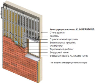 - Utilisation supplémentaire d'isolant - polystyrène expansé, argile expansée, laine de roche ou mousse de polyuréthane. Le matériau est attaché au mur principal, derrière lui se trouve un puits, puis une structure décorative.