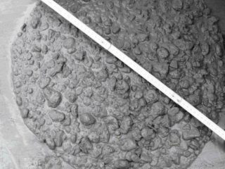 La moitié du volume de béton est occupée par de la pierre concassée fine avec une fraction de 3 à 8 mm. Les bords des pierres sont tranchants et inégaux, ce qui permet d'obtenir une adhérence fiable au ciment. Les bords ébréchés empêchent les pierres de se déplacer verticalement et horizontalement. Le coulage du béton est beaucoup plus résistant que celui du coulis. L'inconvénient est que le malaxage à la main est très difficile, vous devez louer une bétonnière portable, et cela représente un coût supplémentaire.