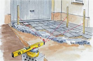 - Mesure de la courbure de la dalle à l'aide d'un niveau. Exposer les phares. Le calcul doit être fait de telle sorte que l'élévation de la chape brute soit de 2 cm au-dessus de l'angle le plus élevé.