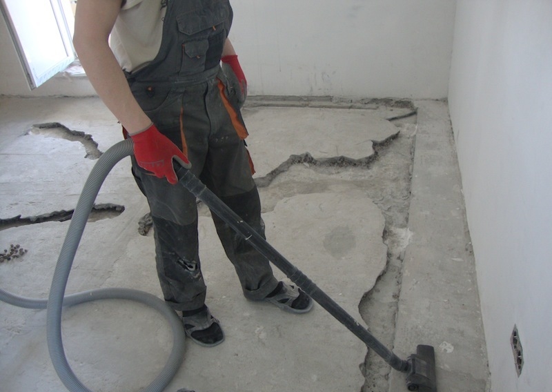 Le travail est sale et poussiéreux, à l'aide d'outils électriques. Elle doit être effectuée avec des lunettes, des gants, des bottes en caoutchouc et un respirateur. Pour exclure les chocs électriques, vous devez utiliser des appareils dans lesquels il y a une borne de terre sur la fiche et dans les prises. Pour que le nettoyage après l'installation prenne moins de temps et d'efforts, il vaut la peine de louer un aspirateur industriel.