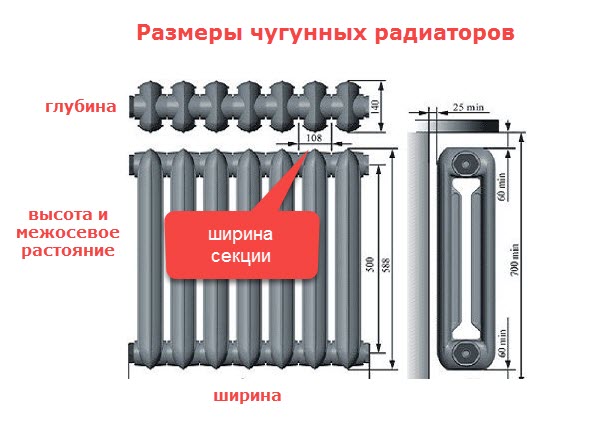 La hauteur de la section radiateur est de 400 à 900 mm, la profondeur est de 100 à 200 mm. La distance entre les centres des trous de mamelon est comprise entre 300 et 800 mm.