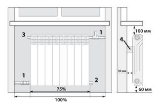 Les radiateurs sont placés strictement horizontalement ou avec une légère pente, en tenant compte du sens d'écoulement du caloporteur. Dans le second cas, lorsqu'il est bouché, il sera plus facile de retirer les bouchons d'air.