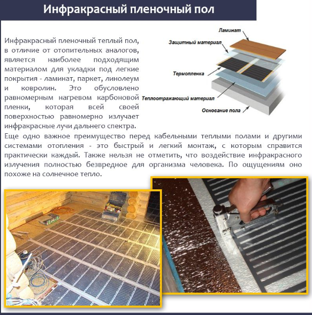 Avant de décider de l'achat et de l'installation d'un sol en film infrarouge, vous devez déterminer l'utilité de cet événement en termes d'investissements financiers et d'effets ultérieurs.
