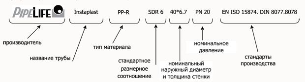 Le marquage sur les tuyaux est un décodage de la méthode de leur production, de leur composition et de leurs caractéristiques techniques. Les valeurs sont appliquées à l'encre noire à l'aide d'une imprimante automatisée au stade final de la production. Les inscriptions s'étendent sur toute la longueur du produit, il n'est pas difficile de les trouver.