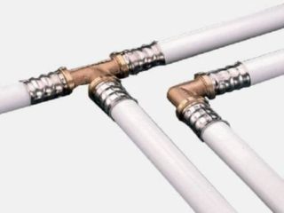Le circuit en plastique renforcé peut être dévié de la chaudière de chauffage ou raccordé à une colonne montante commune. Pour le raccordement, un raccord spécial est utilisé, dans lequel une extrémité est équipée d'un filetage interne et l'autre d'une rondelle coulissante ou d'un manchon à sertir. Tout d'abord, le produit est vissé sur un tuyau de dérivation avec un filetage externe, le joint est scellé avec du ruban FUM ou du câble. Après cela, le manchon est poussé sur la pièce en plastique et serré avec une rondelle de butée. Une telle connexion est fiable, mais nécessite un serrage régulier du filetage. Si nécessaire, le raccord peut être remplacé par un produit plus avancé.