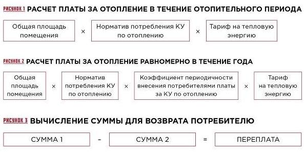 La superficie du logement est multipliée par le taux actuel, la quantité estimée de chaleur nécessaire au chauffage est déterminée. De tels calculs ne correspondent parfois pas à la consommation d'énergie réelle. Le gouvernement oblige les résidents à installer des compteurs partagés dans les immeubles à appartements.