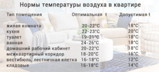 Les normes pour les paramètres de température sont contenues dans le document GOST 30.494 - 2011 et comprennent des indicateurs en fonction du type de pièce: