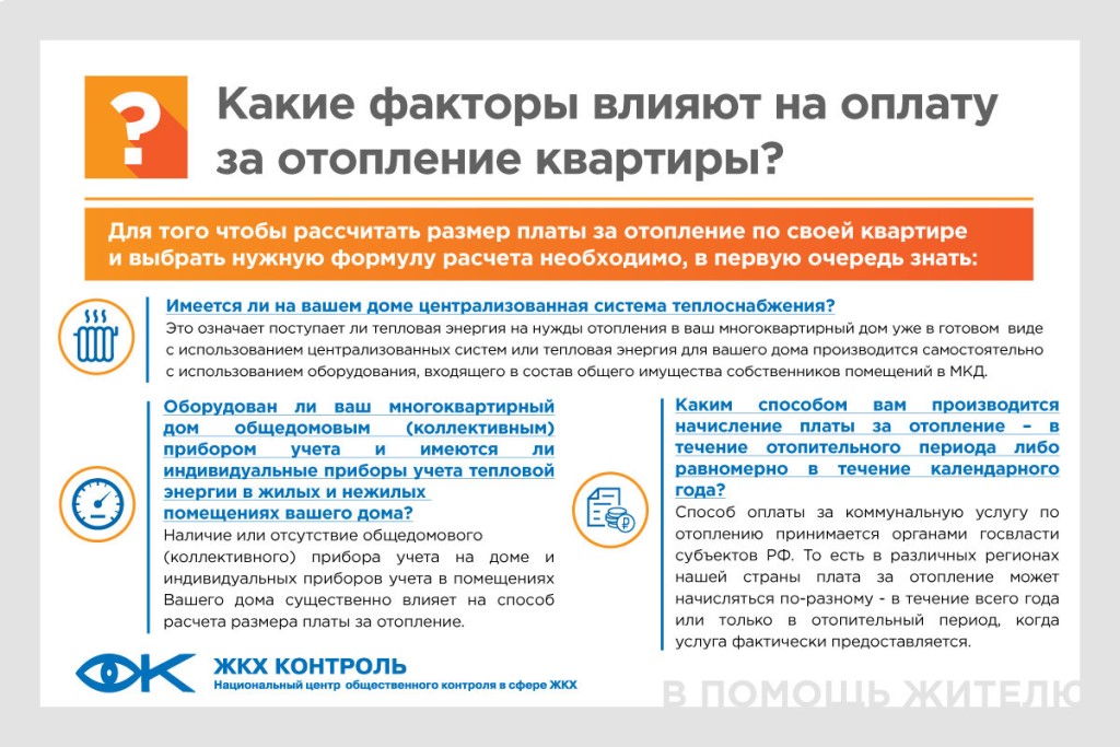 Selon la loi, la redevance n'est calculée que pour la période de chauffage effectif ou est étalée sur toute l'année. L'option est choisie par les autorités du district ou de la ville. Dans la deuxième version, un facteur de correction supplémentaire est appliqué. Dans les maisons avec compteurs partagés, dont les locataires paient toute l'année, un recalcul est effectué pour les mois d'été.