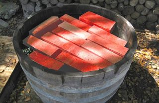 Il est nécessaire de retirer les briques du récipient 30 à 40 minutes avant de commencer le travail, afin que l'eau s'en écoule et que la surface se dessèche.