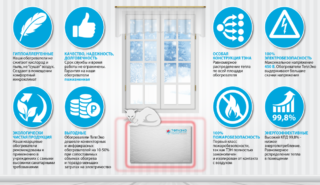 - Efficacité énergétique. La consommation d'énergie économique est le principal avantage du produit. L'appareil a une efficacité maximale, répartit uniformément la chaleur dans la pièce. L'installation d'un thermostat vous donne une réelle chance d'optimiser les coûts.