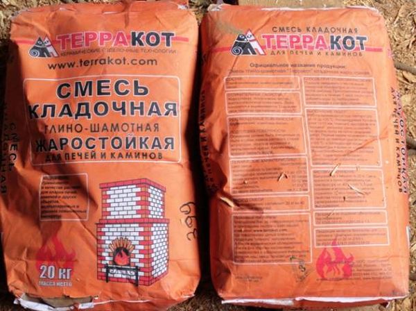 Le produit en argile réfractaire est fourni dans des sacs de 20 kg, ce qui est suffisant pour la pose de 20 à 30 briques. La construction de la cheminée et du foyer est réalisée à partir d'un mélange d'argile et de chamotte dans un rapport de 1: 1. L'eau sera nécessaire ¼ partie.