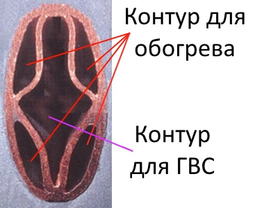 Le design est représenté par deux tubes métalliques insérés l'un dans l'autre. L'eau chaude sanitaire s'écoule le long du diamètre intérieur plus petit et le circuit extérieur est destiné au liquide de refroidissement utilisé dans le système de chauffage. La particularité d'un tel appareil est que l'intérieur se réchauffe à partir du circuit extérieur.