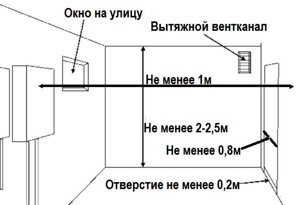 La pièce où l'appareil est installé doit avoir une fenêtre avec une fenêtre. Le mur sur lequel l'installation est effectuée doit être fini avec des matériaux incombustibles. Des mesures doivent également être prises pour augmenter l'efficacité du système de ventilation afin d'assurer un échange d'air suffisant et de minimiser la pollution par les gaz dans la pièce. Il est recommandé de faire un trou dans la porte de la cuisine d'une superficie d'au moins 0,02 m2 et de la fermer avec une grille.