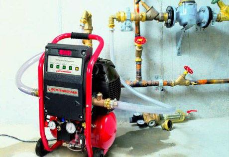 - Après avoir installé tous les équipements auxiliaires, les raccords nécessaires et les capteurs primaires pour la température et la pression du fluide caloporteur, le circuit d'eau est mis sous pression. Le circuit de chauffage est rempli d'eau purifiée et le système est testé pour la résistance et les fuites.